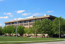 the school's distinctive Inlow Hall is located on the Southeast corner of the